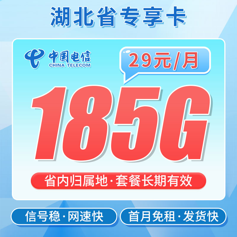 电信逐风卡29元185G+长期套餐套餐构成首月免费,135G流量按天折算到账;之后每月29元/月,155G通用流量(其中50G次月添加)+30G定向流量长期有效归属地湖北不发地区只发湖北配送方式京东激活方式上门激活首充渠道激活过程中跳转充值办理年龄20-65岁违停复机-套餐合约12个月合约注销方式支持异地注销、营业厅注销,合约期内注销有违约金,违约金=(原套餐月租-当前月租)×已履约月份,如有变动以官方为准