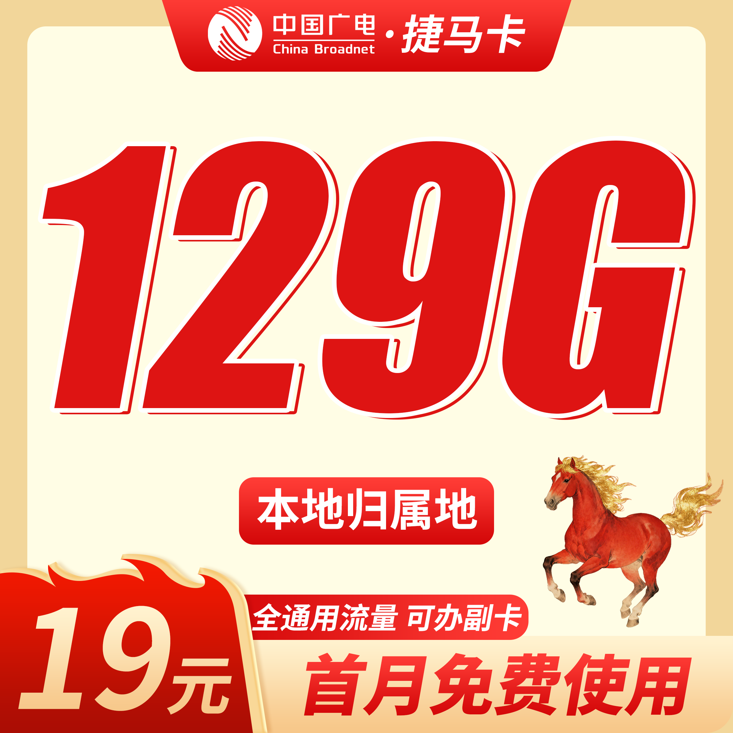 广电捷马卡19元129G+可办理副卡+本地归属地!