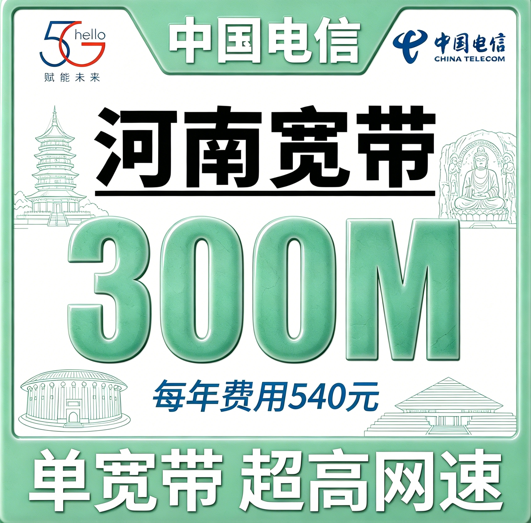 河南单宽带电信540元年享300bps